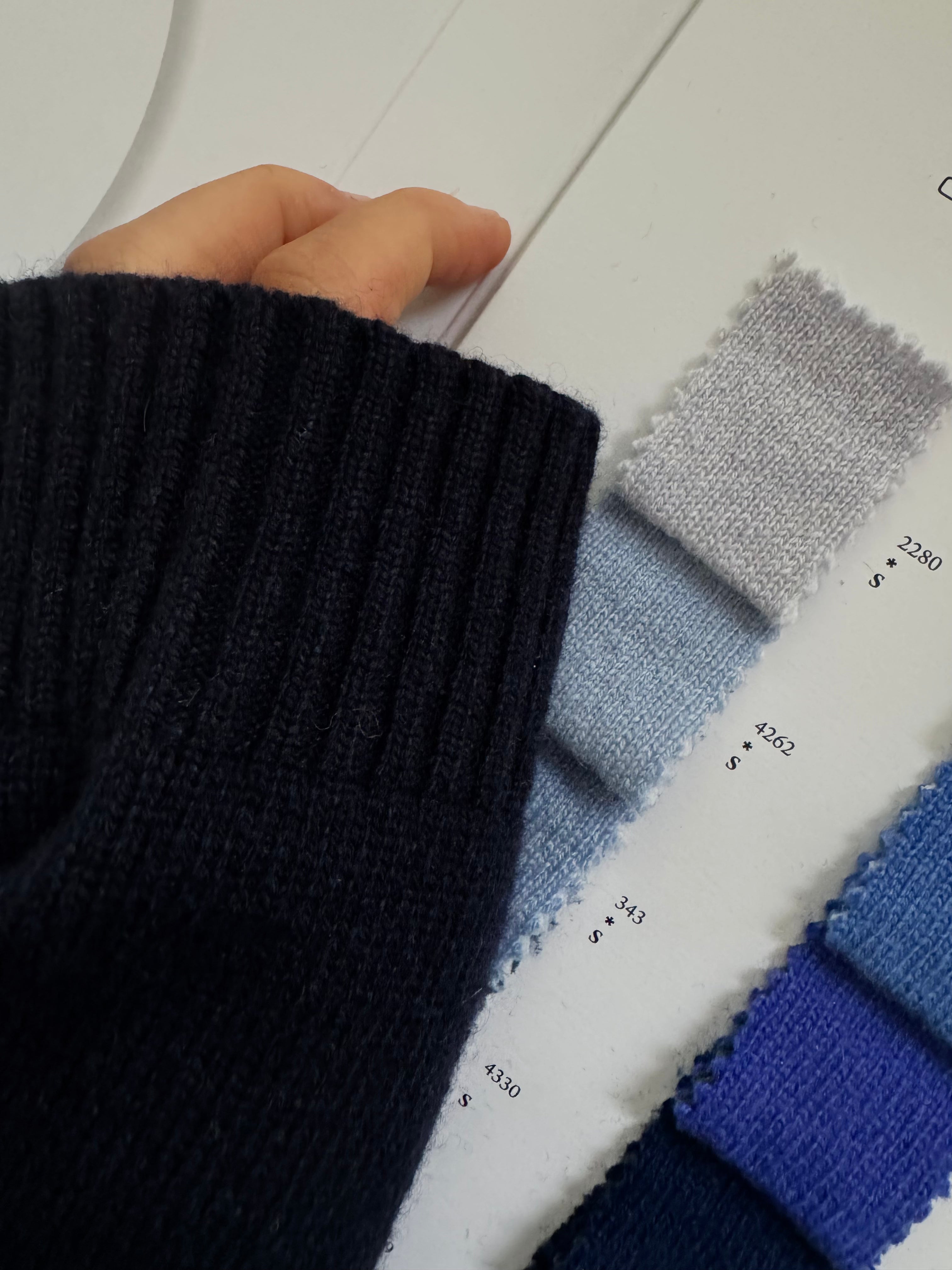 The design checklist was clear: a timeless navy hue, no logos, and only natural fibers, and a luxurious blend of cashmere and wool. To bring it to life, we partnered with an Italian knitwear family business with decades of expertise. After several rounds of prototyping, we finally created the Quarter Zip we’d been dreaming of.