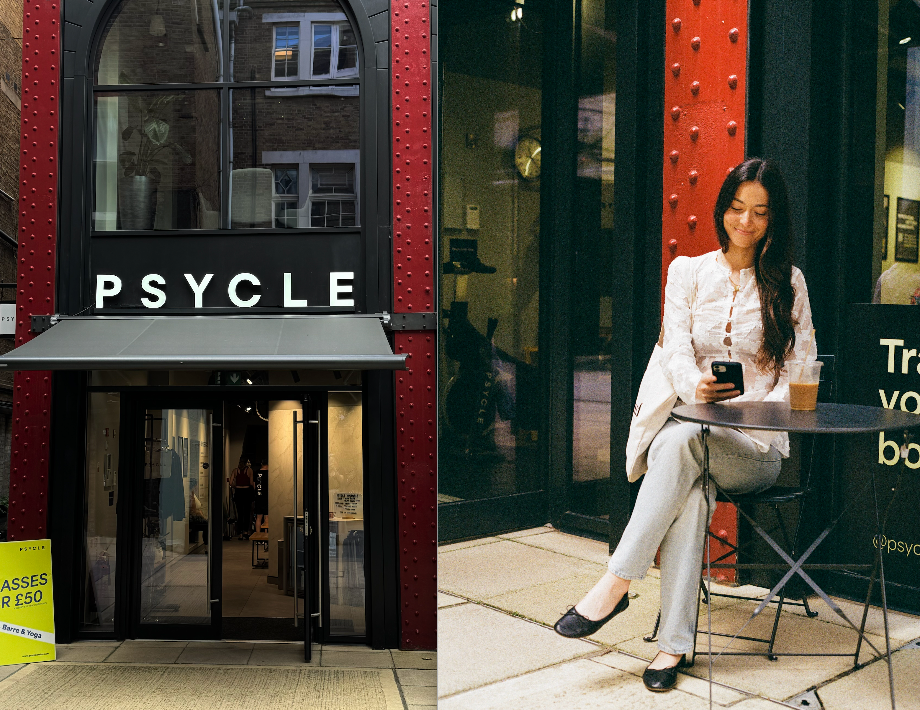 After coffee and groceries, Ines shows us her favourite workout place, Psycle, located in Eccleston Yards. In this courtyard we see a mix of foodie spots and sports clubs, from Atis (popular salad place) to places like Psycle and Barry's. All of these crowded by locals in their late 20s.