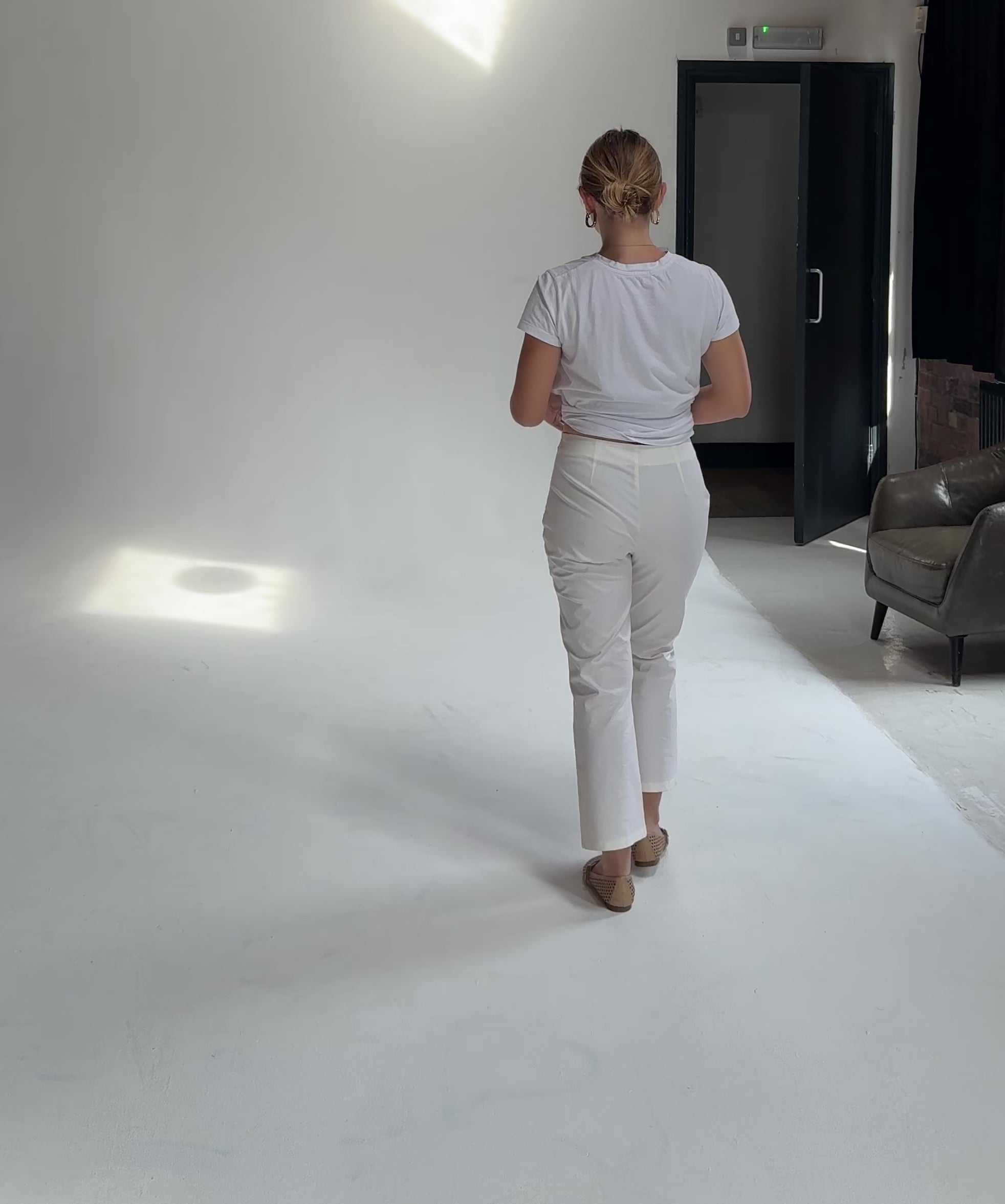 The designated summer essential white trousers. The Breezy Pants in Vanilla Stripes are made from a breezy light dry and textured stretch textured stripe poplin deadstock material sourced from a luxury maison in Paris. Made in Spain.